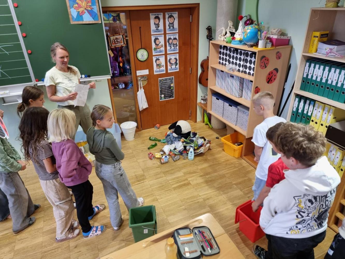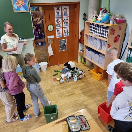 Auch die richtige Mülltrennung sowie der Recyclingprozess verschiedener Materialien wurden anschaulich erklärt und gemeinsam erarbeitet.