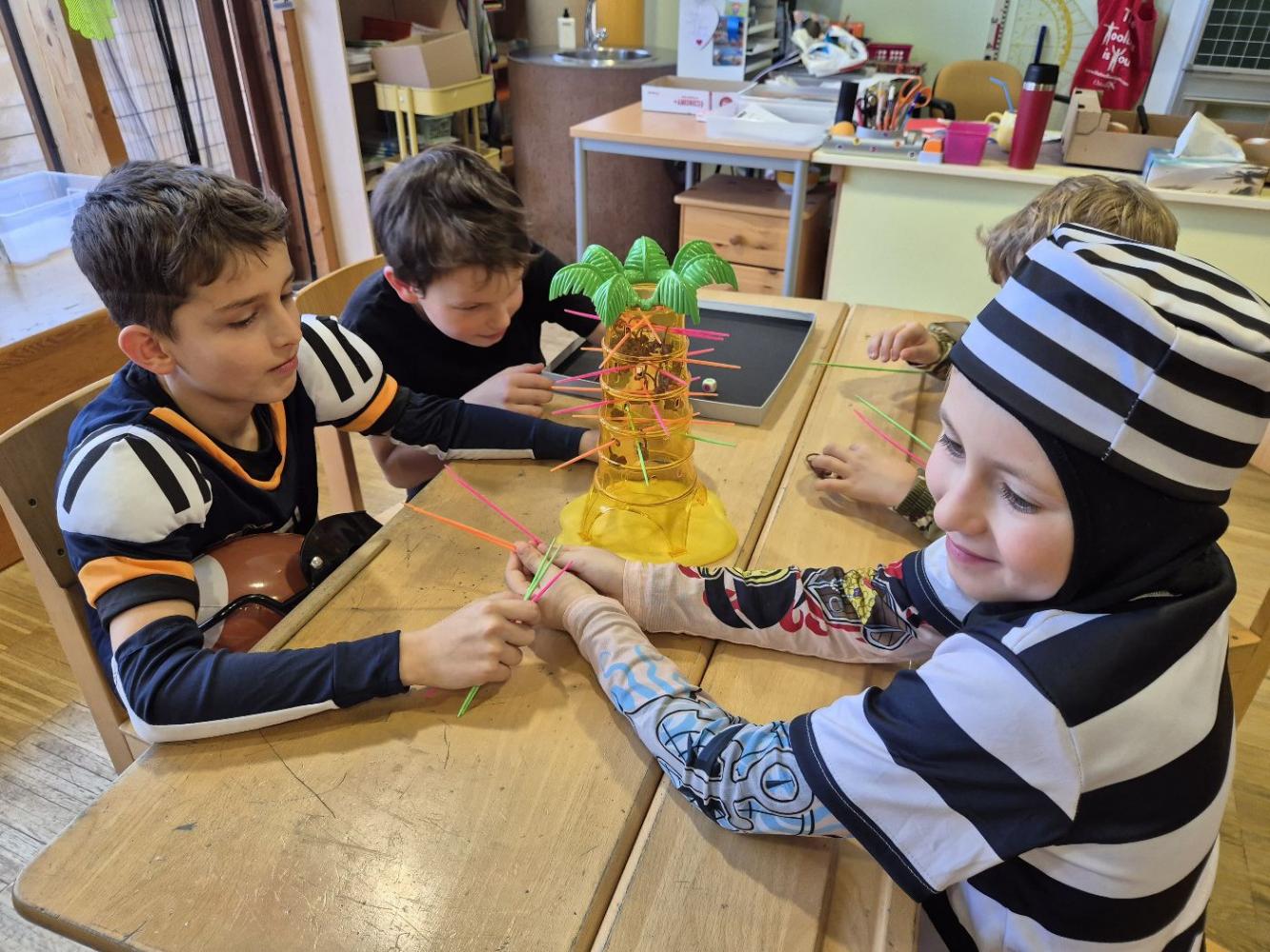 Die Cheerleader, Polizisten, Indianer, Tiere und vielerlei andere Gestalten durften in klassenübergreifenden Gruppen und verschiedensten Stationen einen spannenden und lustigen Vormittag verbringen.