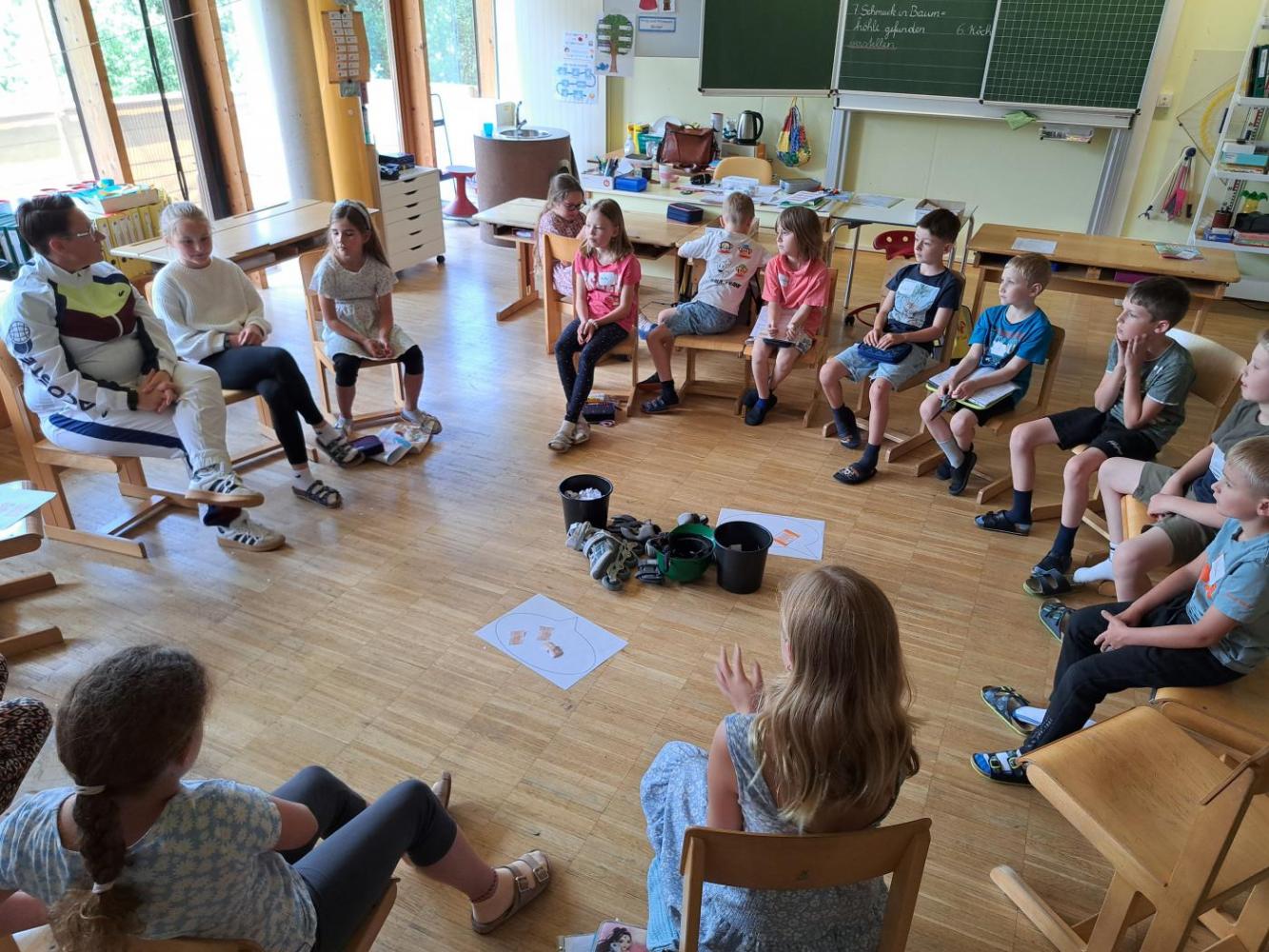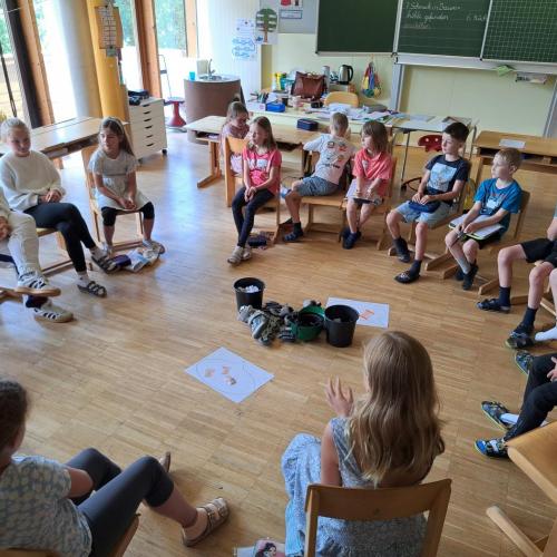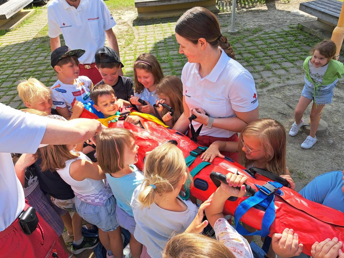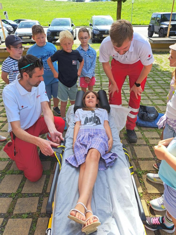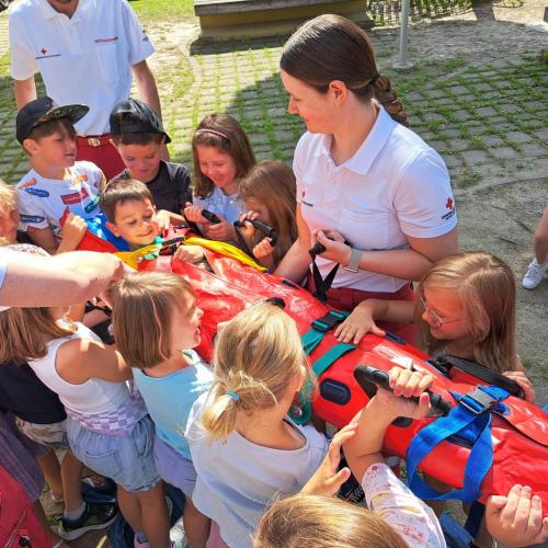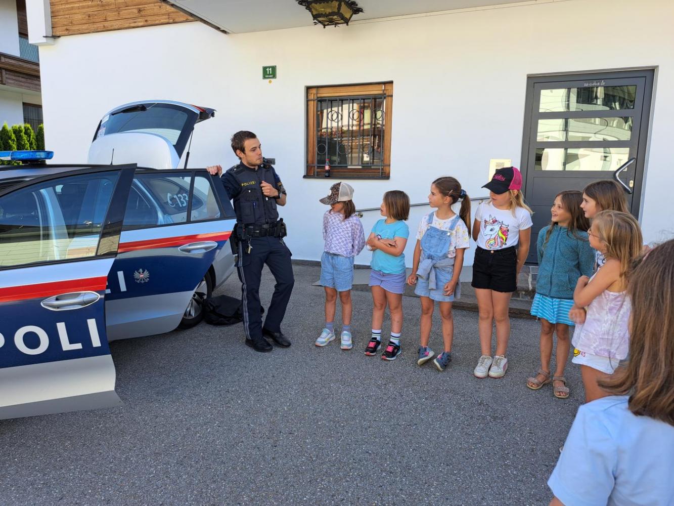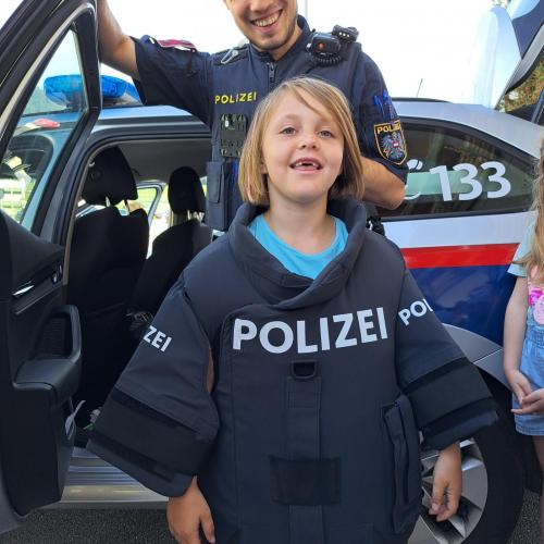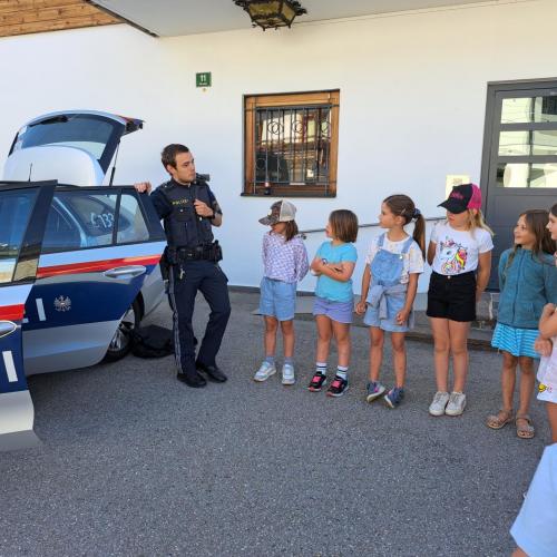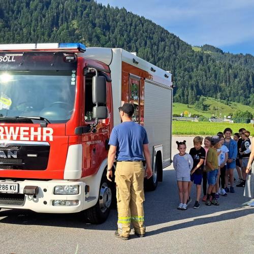 Zwei Tage lang war Stationsbetrieb angesagt: Die Kinder durften in jahrgangsgemischten Gruppen viele interessante Themen entdecken rund um Polizei, Feuerwehr und Rettung. Am dritten Tag konnten alle Schülerinnen und Schüler anhand des großen Feuerwehrautos den „toten Winkel“ erleben und mit dem Feuerwehrschlauch spritzen (danke, Schulwart Andi!). Die Besichtigung des Polizeiautos (danke, Polizist Lukas!) und eines Rettungsautos (danke der ganzen Mannschaft) rundeten das Vormittagsprogramm ab.