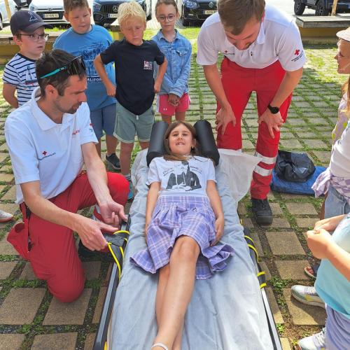 Bei der Feuerwehrübung haben sie alle 14 Kinder aus dem Schulgebäude gerettet. Die Feuerwehrmänner brachten uns aus dem Haus und übergaben uns an die Rettung. Dort wurden wir gleich medizinisch versorgt. (Emilia, Magdalena, Miriam)