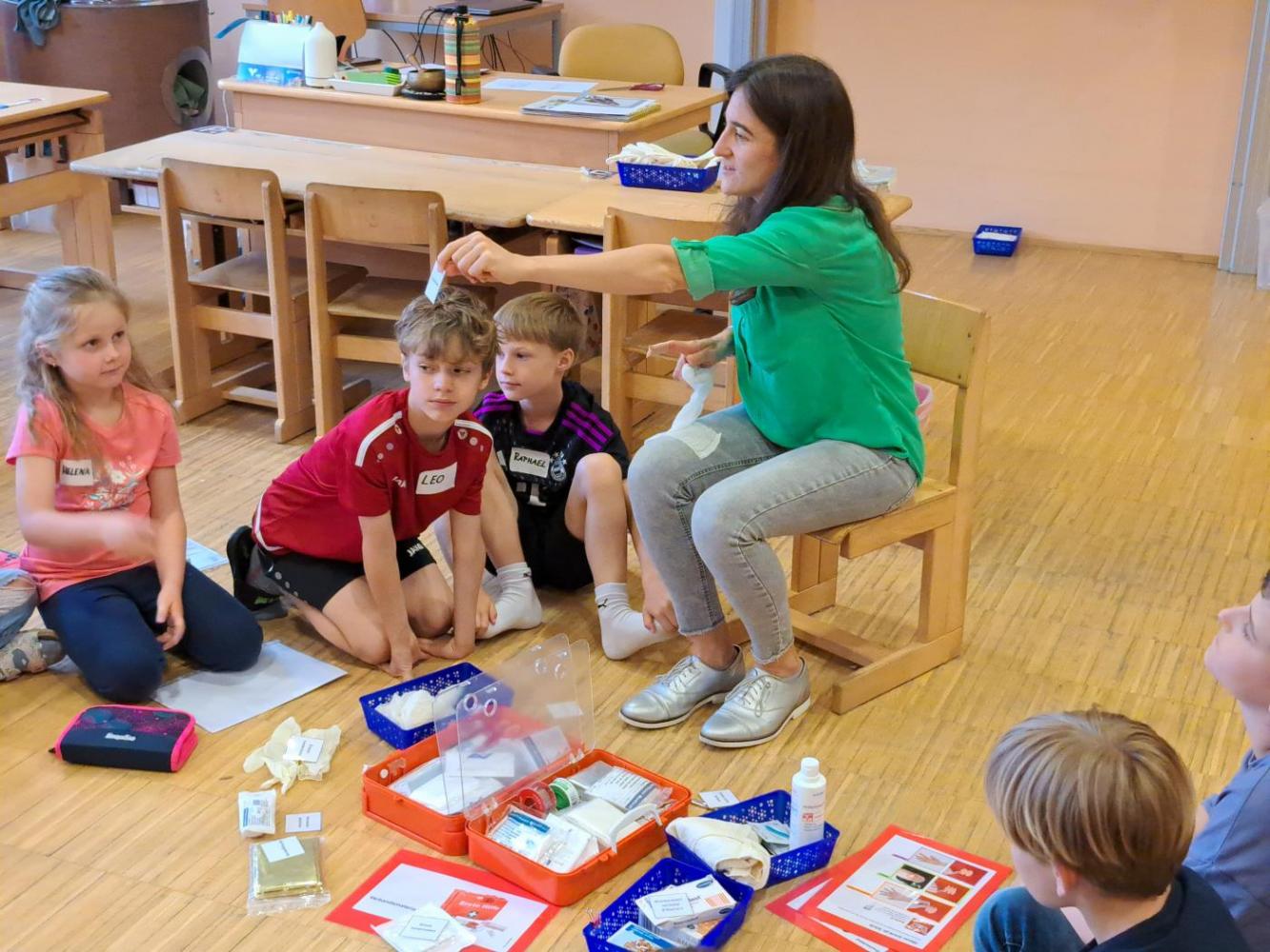 Bei den Blaulichttagen haben wir die stabile Seitenlage gelernt, und wie man ein Pflaster zuschneidet. Im Turnsaal haben wir Detektiv gespielt. Wir haben gelernt, wie man mit Feuer umgeht. (Hanna, Maria)