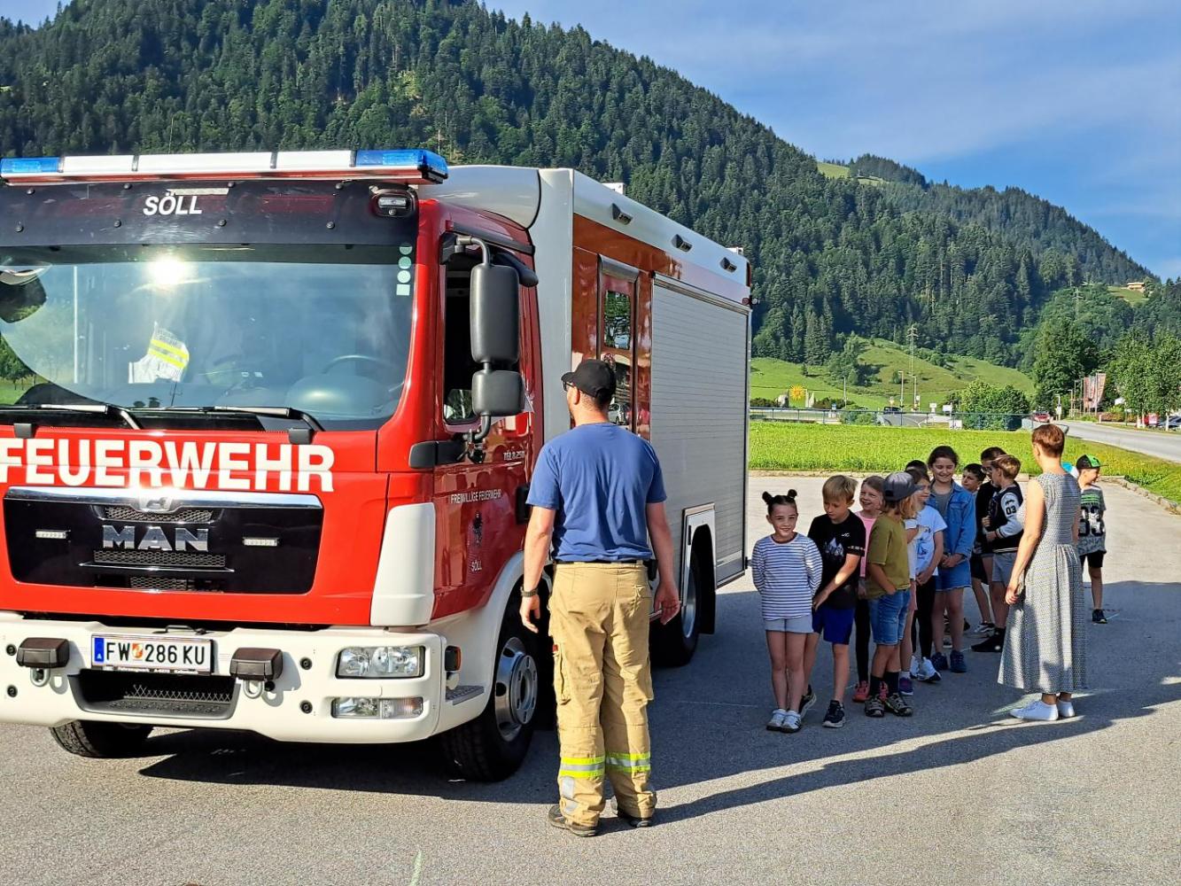 Mitte Juni stand an der Volksschule Söll drei Tage lang alles im Zeichen der Blaulichtorganisationen, und zum krönenden Abschluss konnten wir am Mittwoch, 18. Juni 2025 in Zusammenarbeit mit der Feuerwehr, dem Roten Kreuz und der Polizei eine großangelegte Feuerwehrübung durchführen.