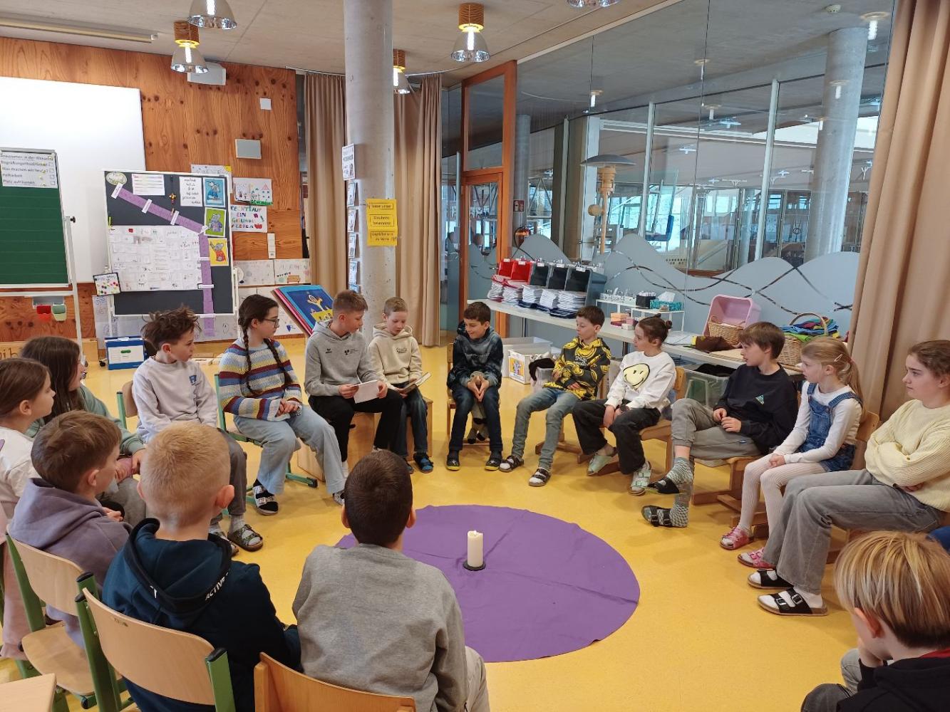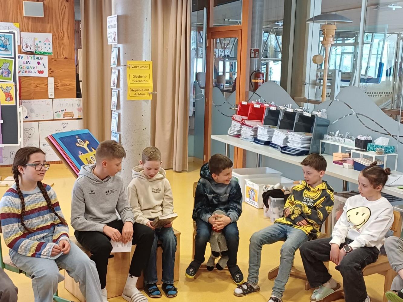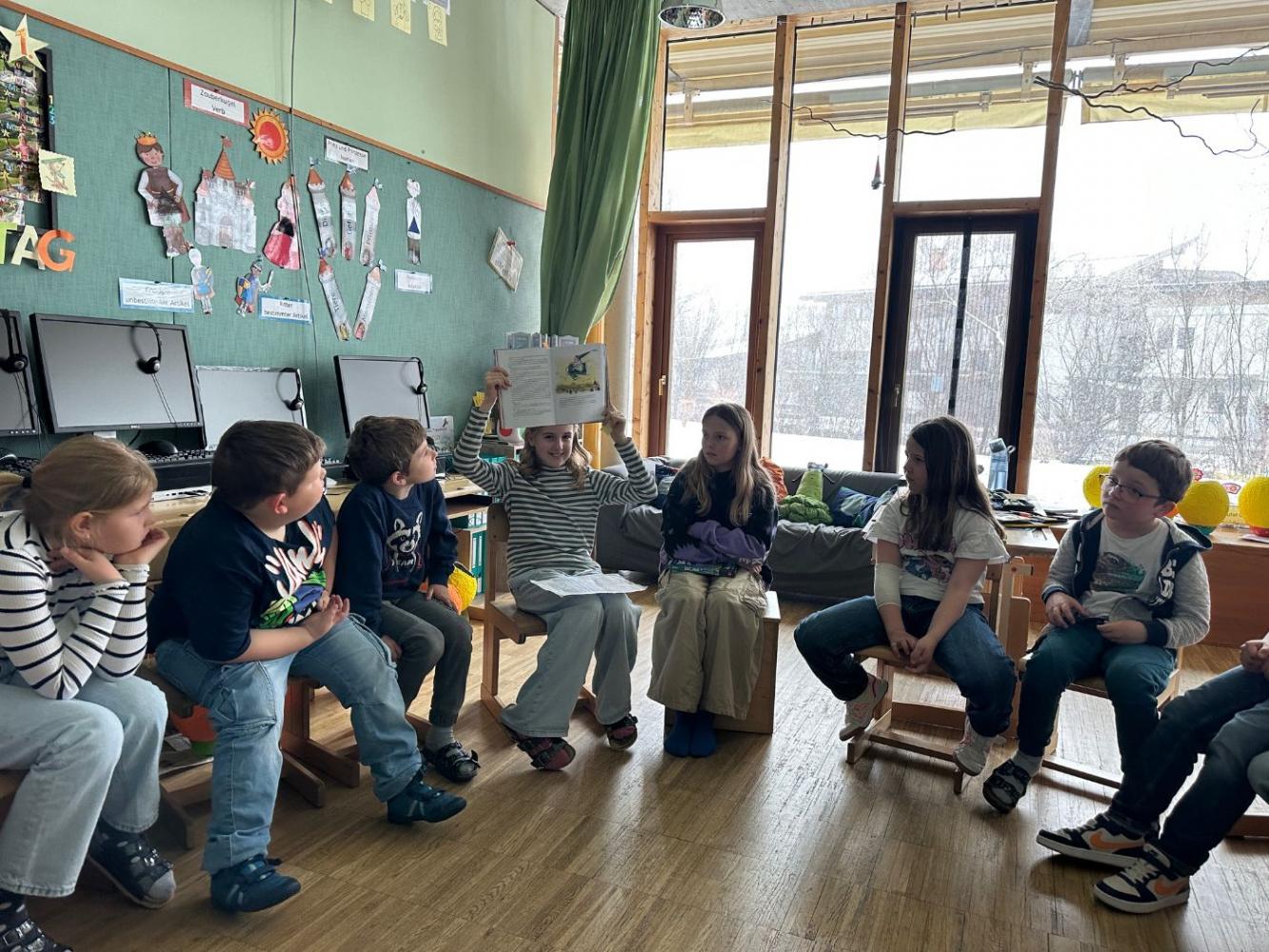 Ein ganz besonderes Highlight waren die Besucherinnen und Besucher aus der Mittelschule. Schülerinnen und Schüler der ersten Klassen kamen zu uns ins Haus und verteilten sich auf die einzelnen Klassen, um aus ihren mitgebrachten Büchern vorzulesen. Mit viel Engagement und Begeisterung nahmen sie die jungen Zuhörerinnen und Zuhörer mit auf eine Reise in fremde Welten und aufregende Geschichten.