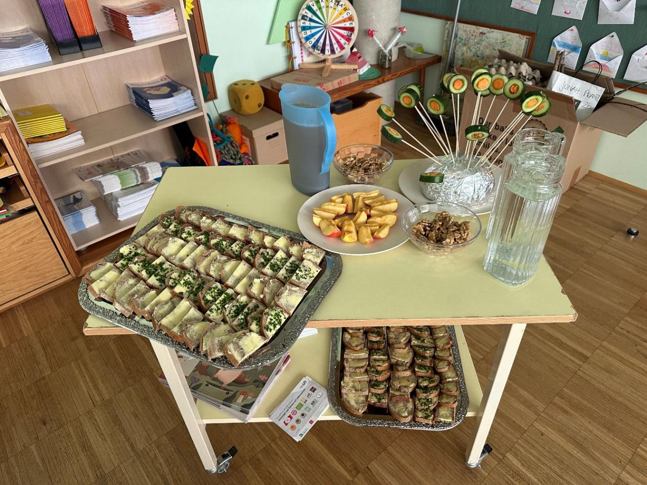 Dabei ging es um gesunde, regionale Nahrungsmittel, diverse Gütesiegel, den Kartoffelanbau und die Ernährungspyramide. Im Anschluss gab es eine leckere, selbstgemachte Jause.